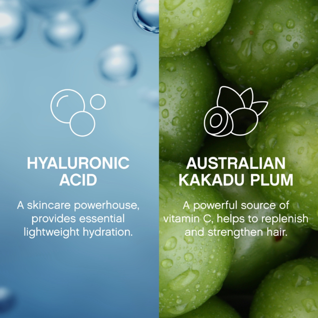 Infused with a complex blend of hyaluronic acid and antioxidant rich Australian kakadu plum, it works overnight to smooth, hydrate and soften the hair. Suitable for all hair types, especially de-hydrated, frizzy and damaged, it can be applied to the mid lengths and ends to reveal smoother, shinier, heathier hair.